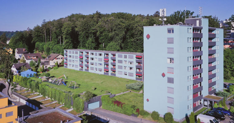 Gepflegte, farbenfrohe Wohnanlage mit ruhigem, familiärem Umfeld und smartem Mietzins erschwinglich für Junge, Familien wie Senioren.